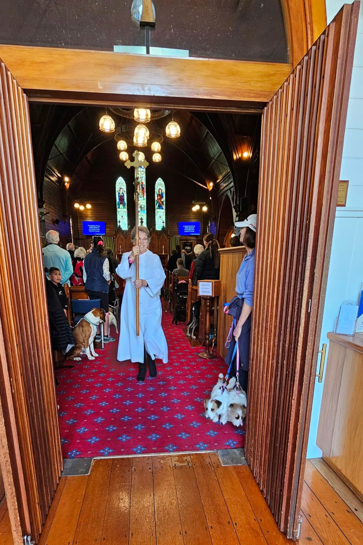 The pets were well behaved throughout the hour-long service; there were no accidents reported but there was a rush for the door when the song Let All Creation Dance finished.