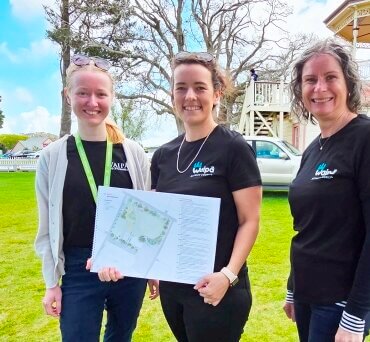The Waipa team, from left Bonnie Lewis, Hannah Divehall and Chris Brockelbank Leamington Domain consultation. Photo: Mary Anne Gill