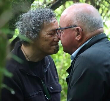 Ricky Winikerei of Ngāti Korokī Kahukura and Cambridge Resthaven Trust Board chair Greg Liddy share a hongi. Photo: Jeremy Smith.