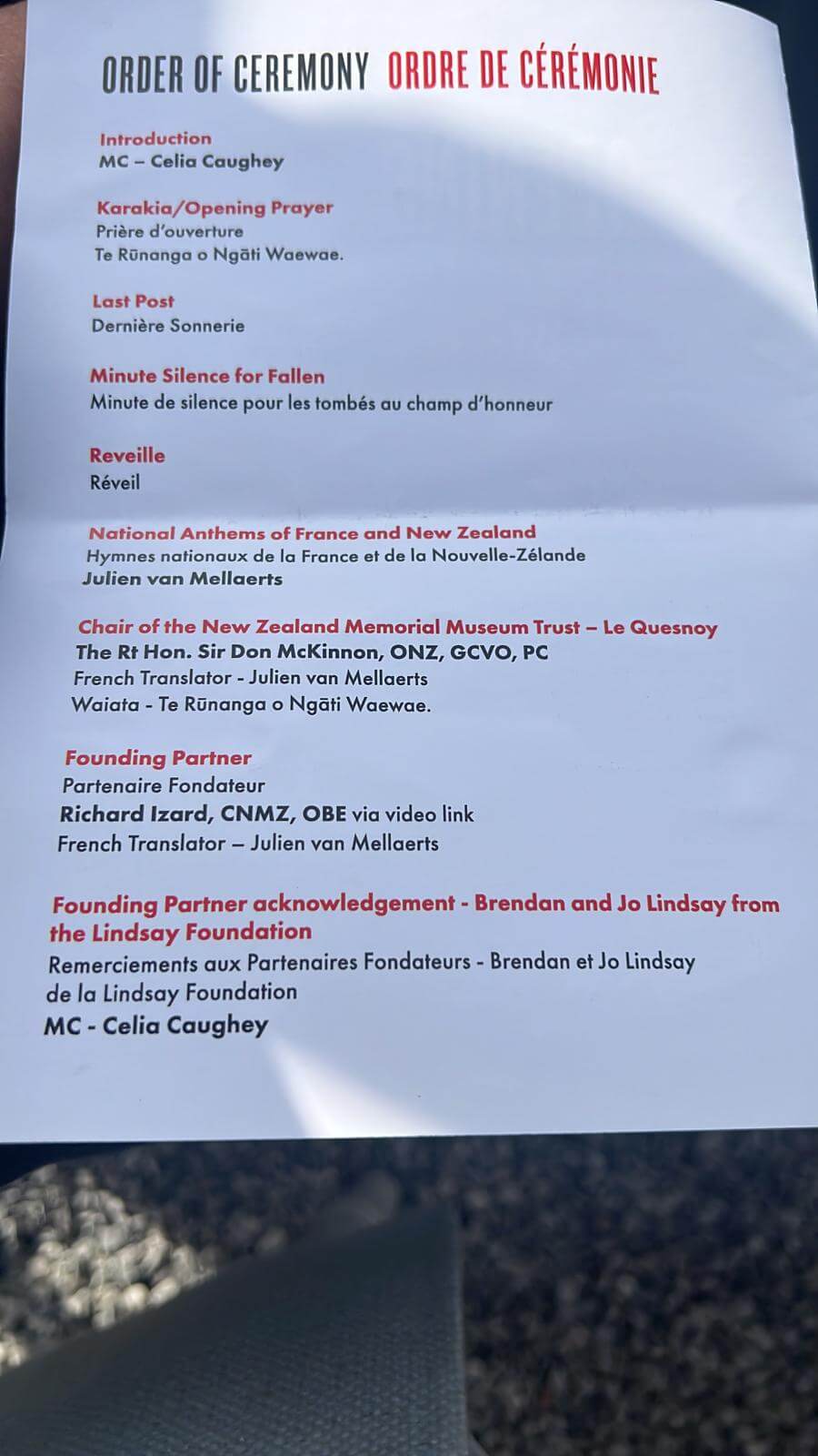 - Order of Ceremony: Photo: Susan O’Regan