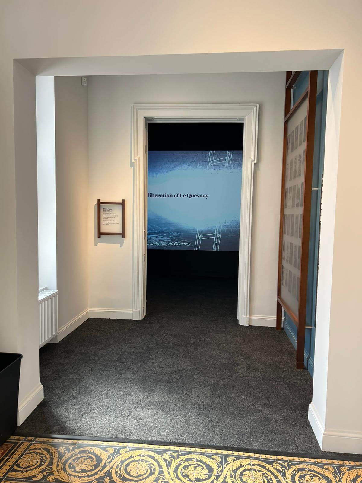 A video plays inside the Le Quesnoy museum featuring Cambridge’s sister-city relationship. It shows Grahame Webber laying a wreath. Photo: Liz Stolwyk.