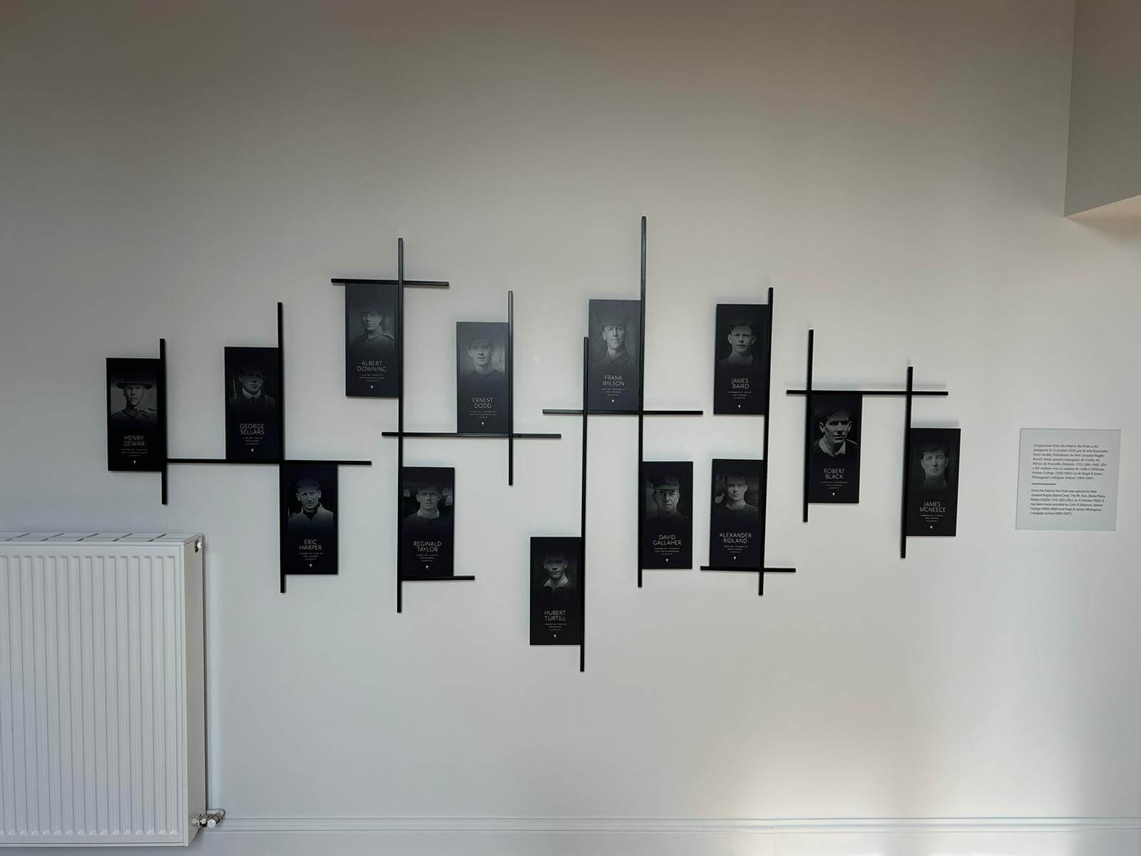 The colour of the panels is inspired by the winter flowers the people of Le Quesnoy pinned to the soldiers after the liberation.