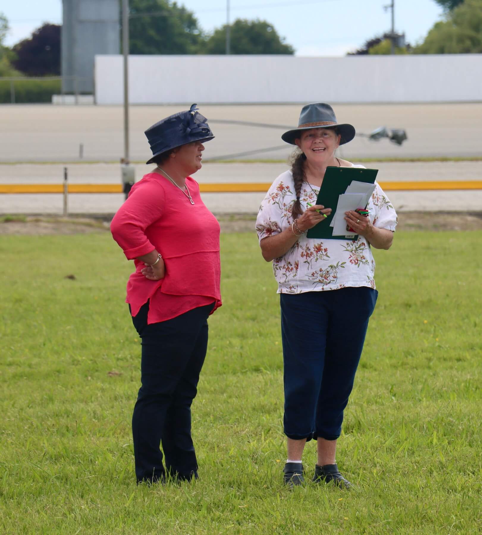 - Judge Monique Bennett, left, and steward Jackie Brett compare notes.