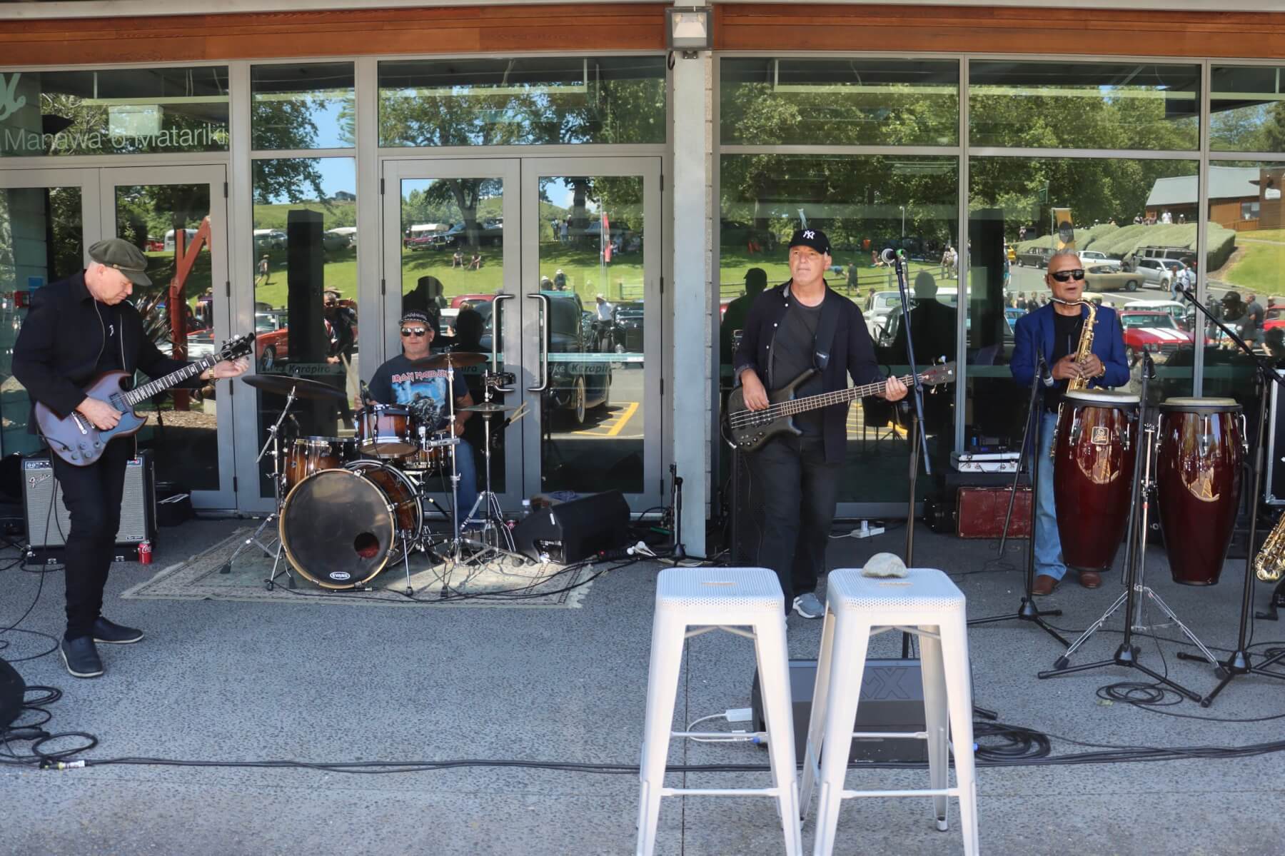 - The Tim Armstrong Band got the crowd rocking. From left to right is Tim Armstrong on guitar, Nigel Sanderson on drums, Don McClumpha on bass and Hira Morgan on the saxophone and the conga drums.