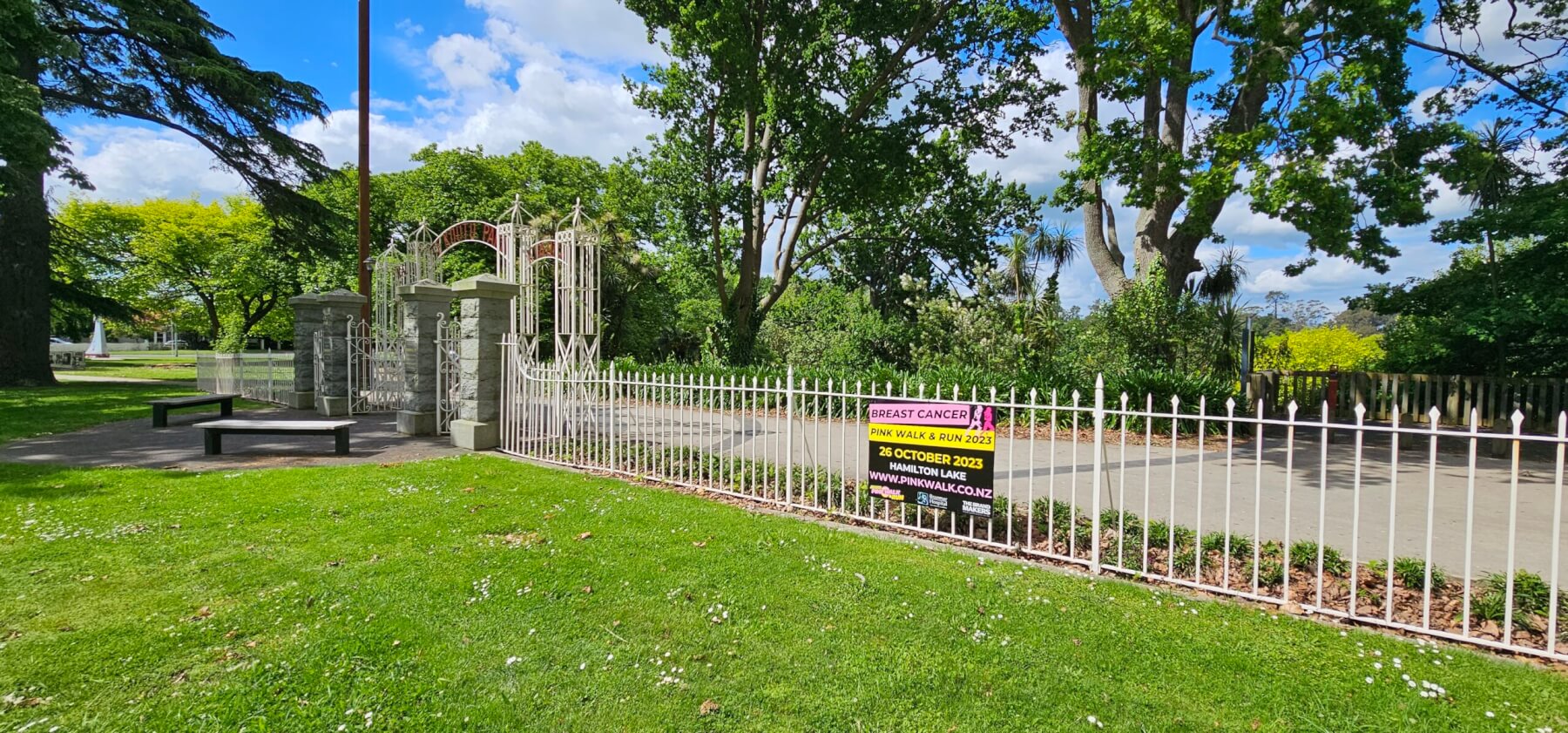 Signs for events such as the Pink Walk and Run in Hamilton last month were still on display around Cambridge this week, including at the town’s entrances.