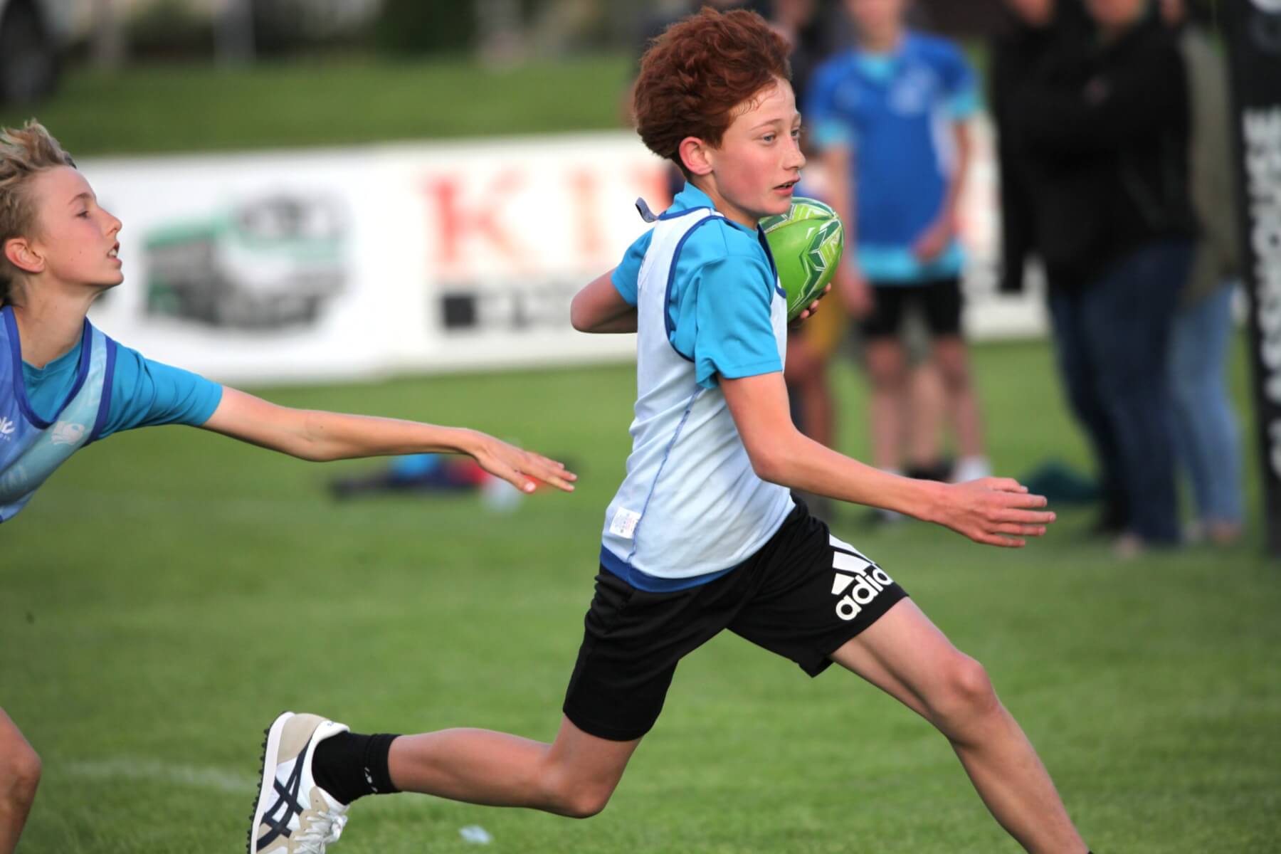 - Aidan Mulligan, 13, charges towards the opposition.
