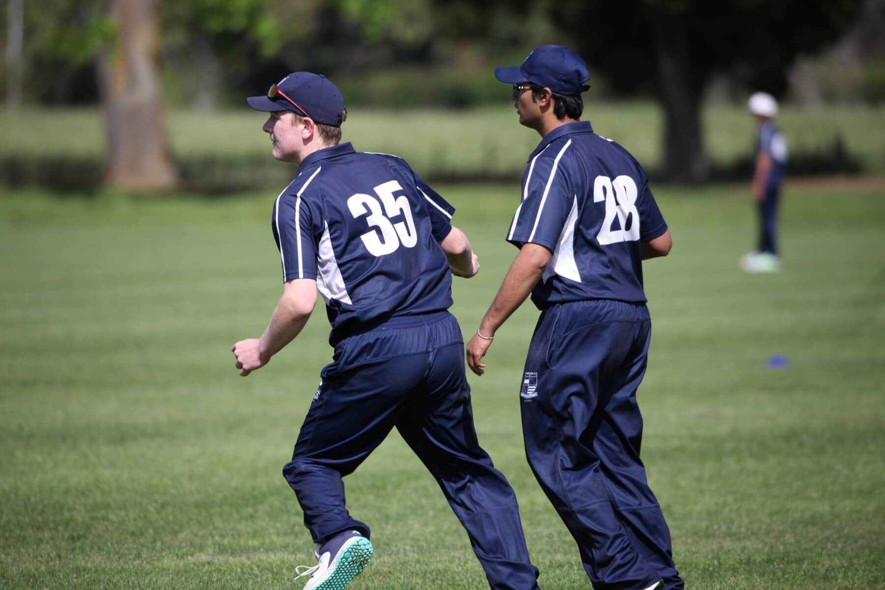- Cambridge High School 2nd XI captain Hamish Copeland (left) scoops up the ball next to teammate Mustafa Jameel.