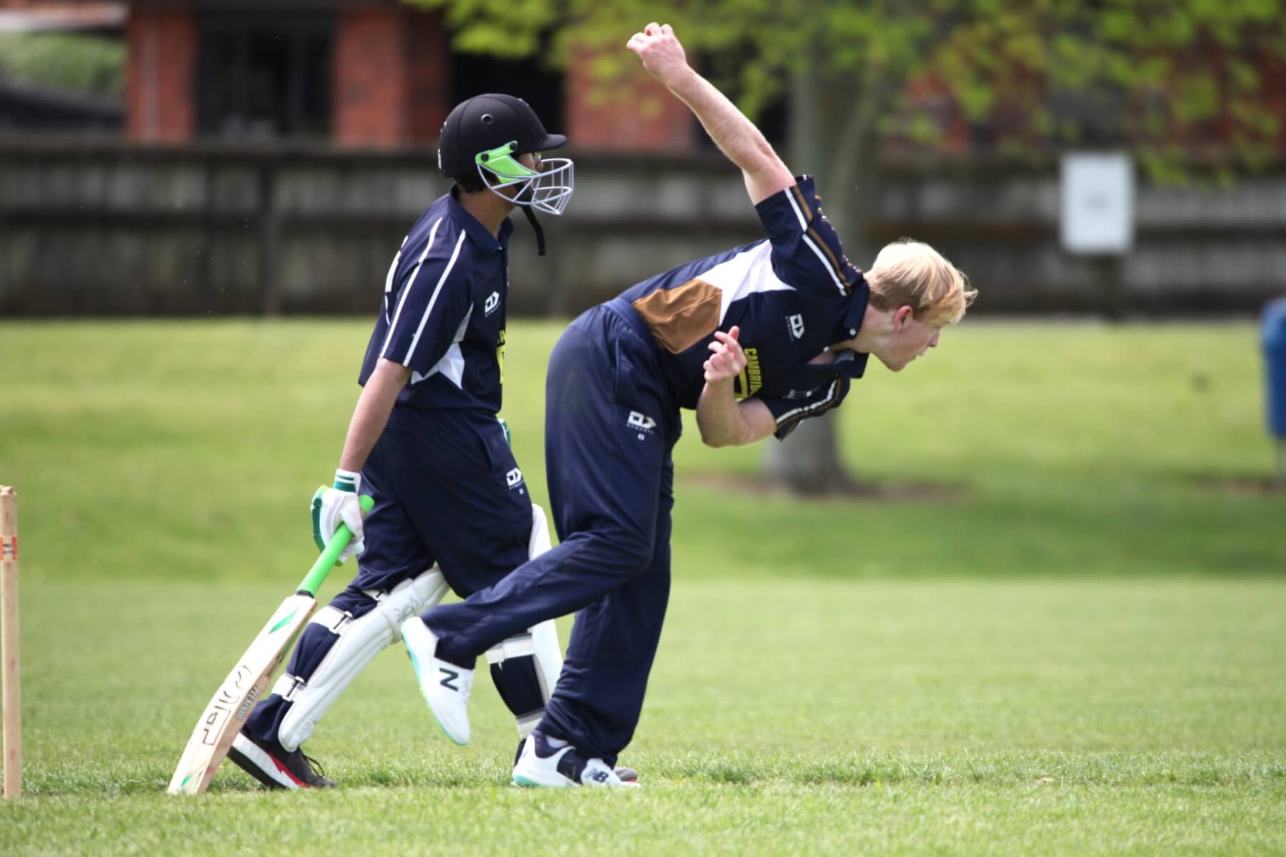 - Cambridge High School 1st XI bowler Jake Thorne fires one down the pitch, watched by 2nd XI batsman Mustafa Jameel.