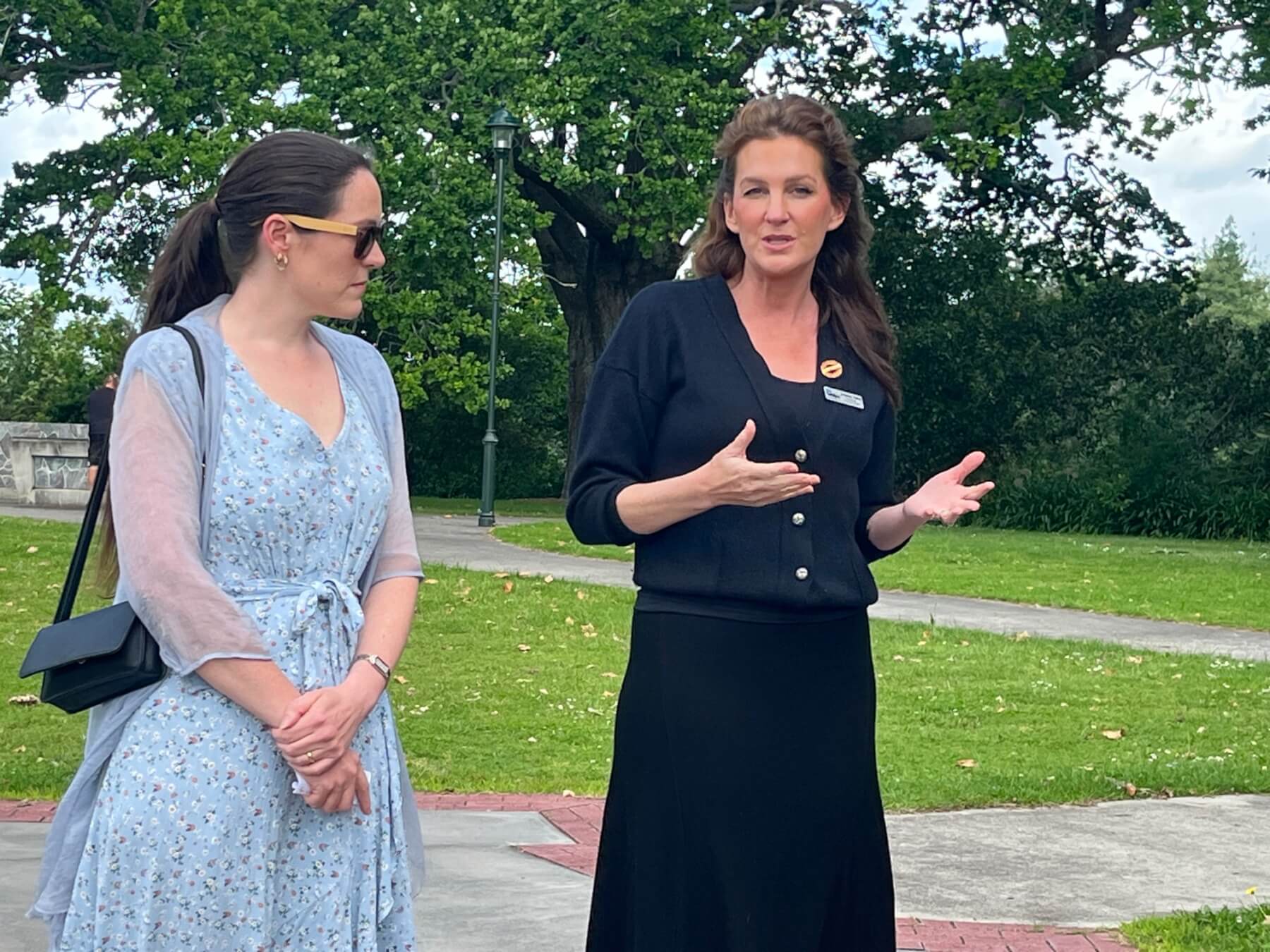 - Cambridge-Le Quesnoy Friendship Association chair Alana Mackay, left, at the gathering with Cambridge Community Board chair Jo Davies-Colley, who attended last month’s opening of Te Arawhata – New Zealand Liberation Museum.