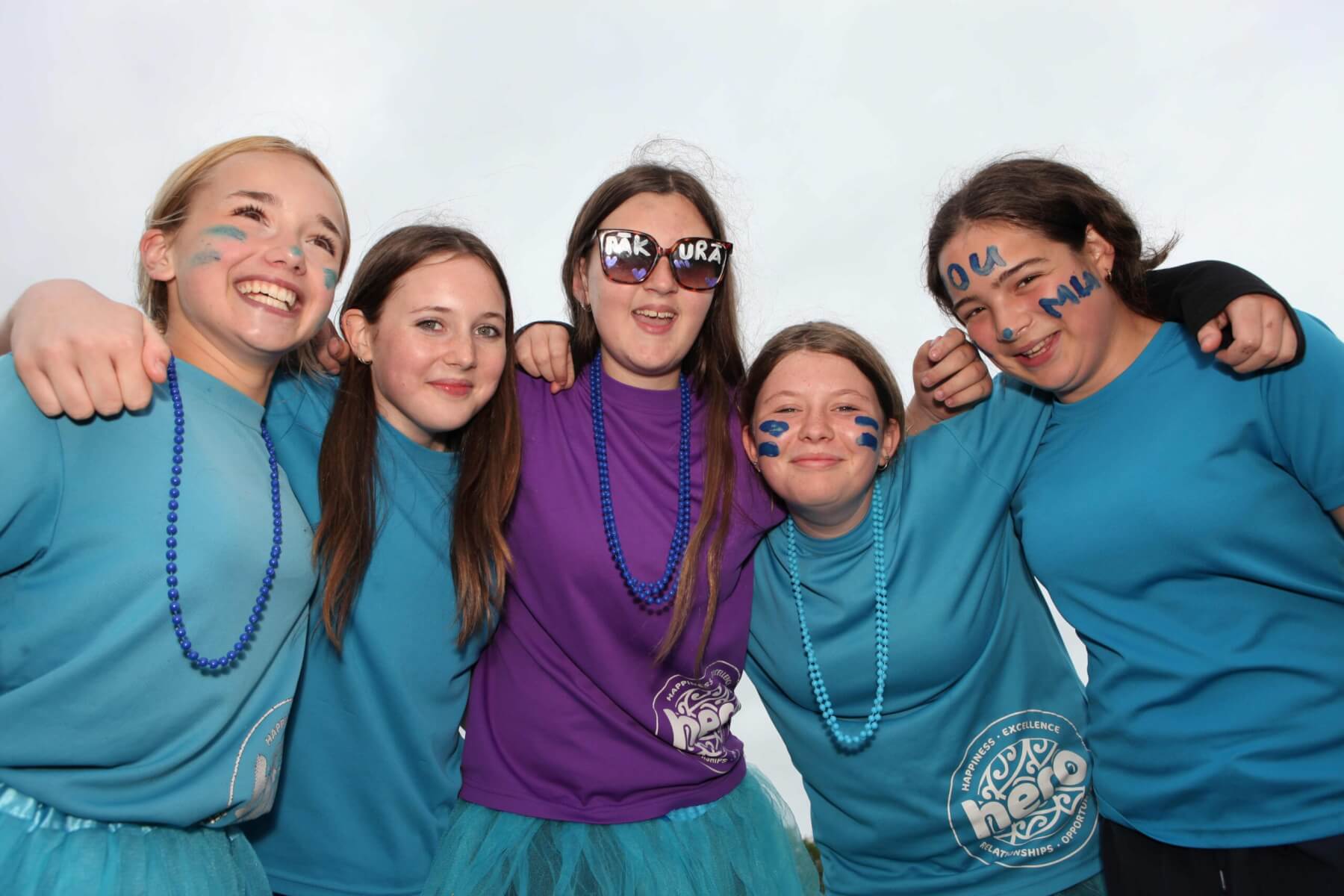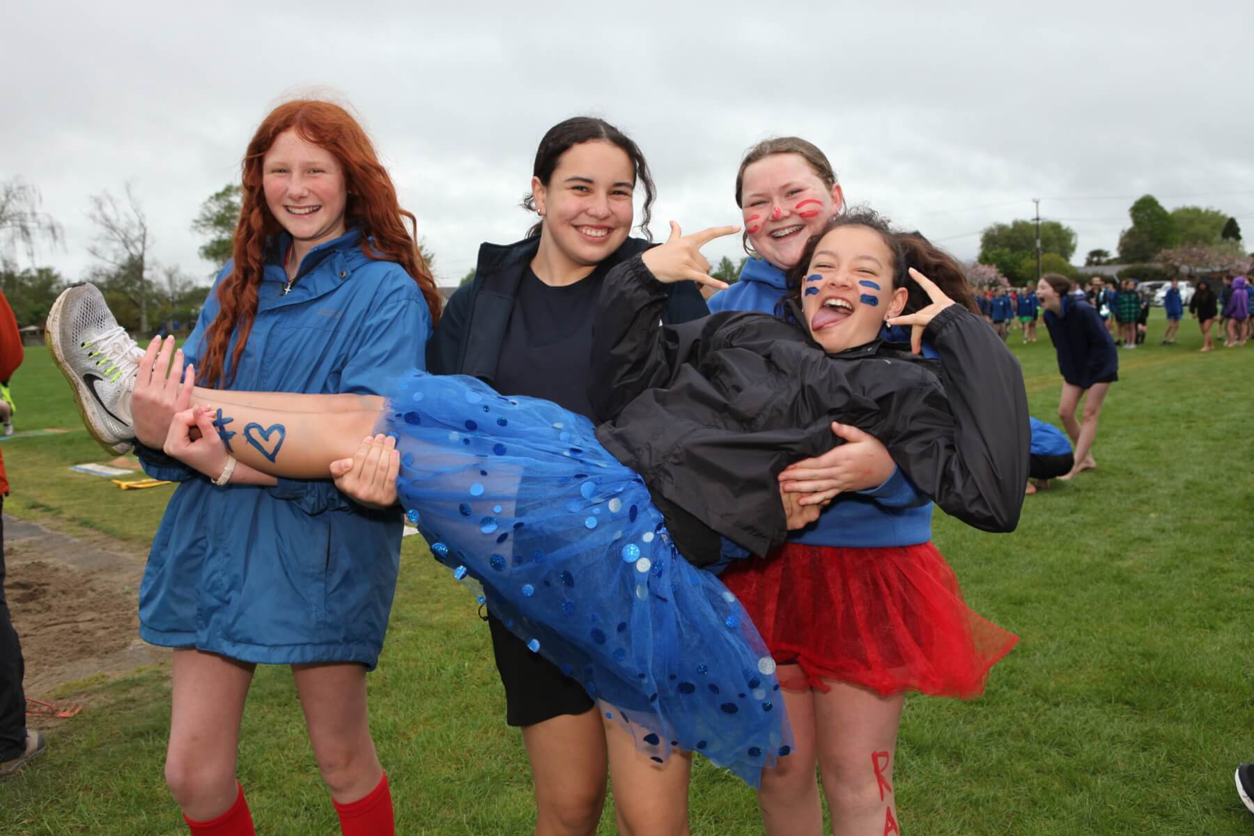 - (From left) Ella, Reyd, Ruby, Lily and Hayley dressed up in house colours to support their teams and said the best thing about athletics day was hanging out with their friends