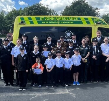 Pictured after the Hato Hone St John awards presentation are, from left, Waipā District Councillor Roger Gordon, Ryan Hazelwood, Emily Mclintyre, Leo Loft, Michael Rix, Emma Barrett, Peter Fox-Worthington, Rev Michelle Willis and Jim Goddin. Middle from left are Jack Redpath, Nikki Mathews, Barry Baldo, Luka Dekic, Emmelie Williams, Damian Williams, Rebecca Brocklebank, Paulo Bazaldua, Jo Pannell, Karena Rix, Sarah Rix and Brent Nielsen. Front from left are Liam Miller, Aaron Dinan, Jed Harrison, Kolten Harrison, Nash Harrison and Flynn Cumming.