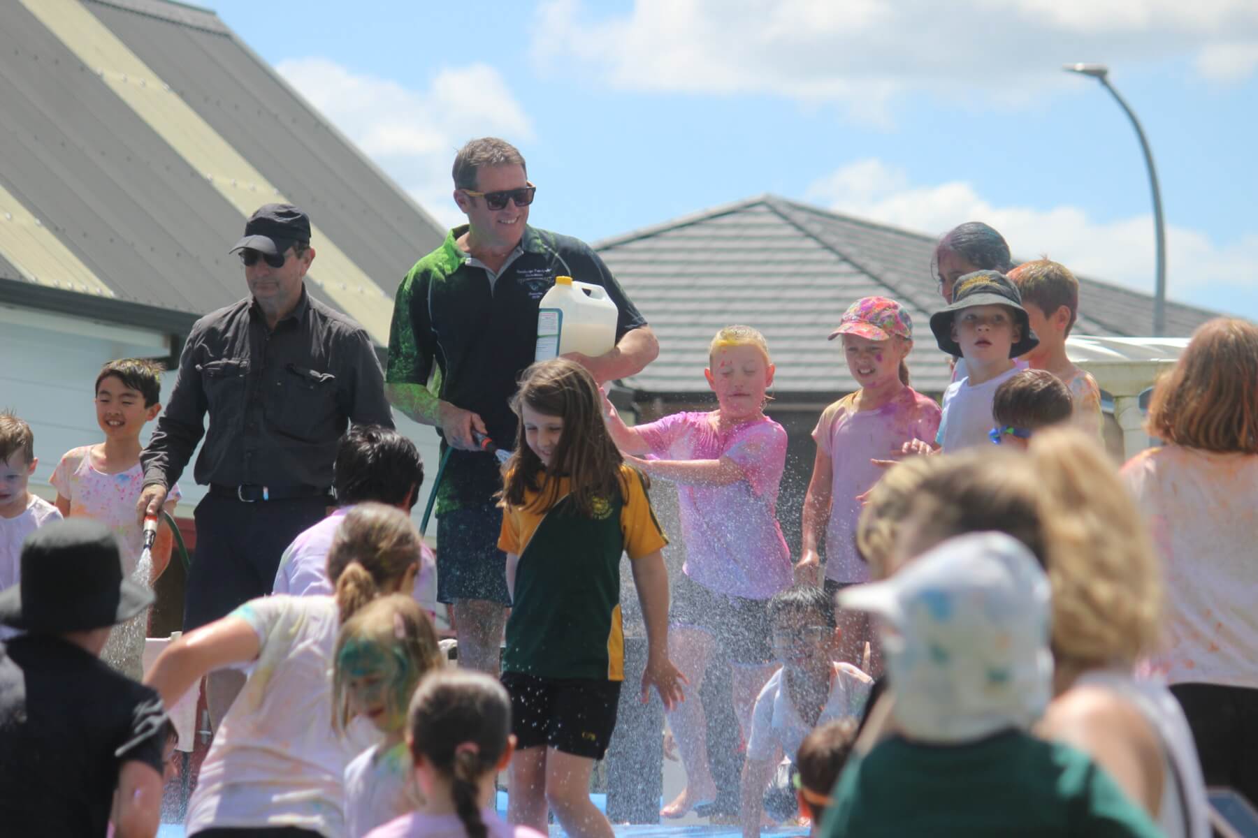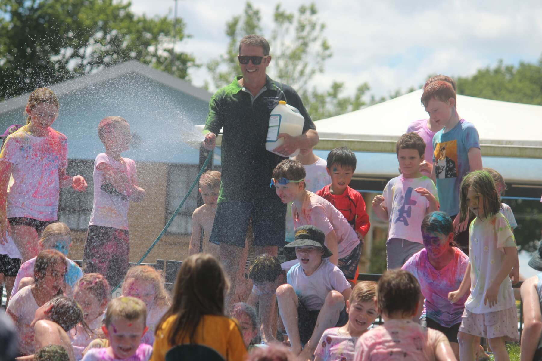 - Big kid: School principal Mike Pettit who happily sprayed children on the water slide.