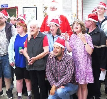 Achievement House workfloor staff and Santa enjoying last week’s Christmas party, organised by the Rotary Club of Cambridge.