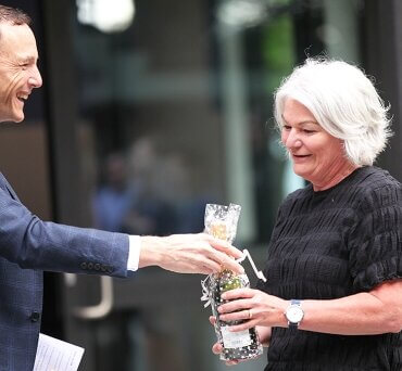 Principal Greg Thornton thanks the school’s business manager Amanda Wright for her crucial contribution to the S Block project. Photo: Steph Bell-Jenkins.