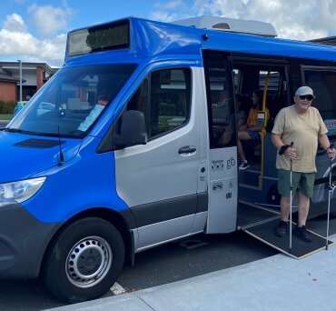 David Stephens tests out the Sprinter bus at Tamahere Eventide. Photo: Supplied.