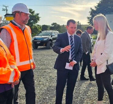 Transport minister Simeon Brown joined Upston, other National Party MPs and mayors – Matamata-Piako’s Adrienne Wilcock and Susan O’Regan of Waipā – at Piarere to turn the sods for a $43.5 million roundabout at the intersection of SH1 and SH29 last week.
