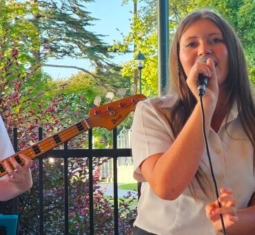 Belting out the Amy Winehouse classic Valerie was Grace Gillanders while behind her is Grace Vivian on bass and Reuben Stevens on the drums. Photo: Mary Anne Gill.