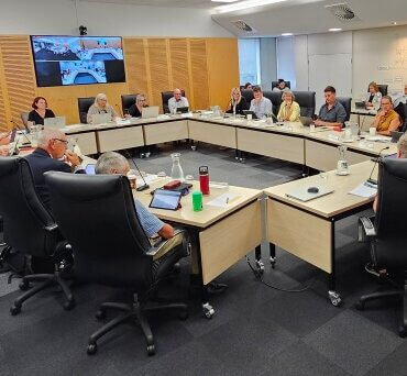 Councillors and staff pictured at this week’s meeting in Te Awamutu, chaired by Liz Stolwyk (top centre).