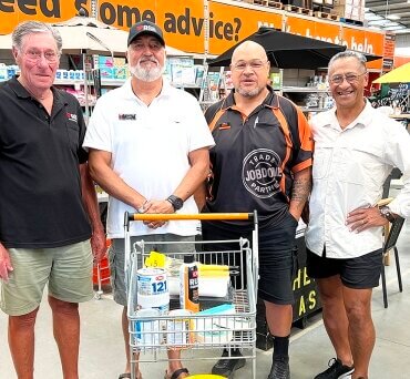 Grateful for the donation are, from left, ‘Remembrance Army’ team leader Alan Sherris, Cambridge RSA president Tony Hill, Mitre 10 Mega Cambridge retail manager Tony Togia, and Cambridge RSA member Patrick Clarke.