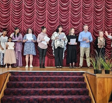 Last weekend there was an orchestra in the Town Hall, Waipā mayor Susan O’Regan could have filled the role as she took to the stage to conduct the allegiance ceremony this time doing the countdown to Ellan Beetge, Michaela Buhrs, Belinda Crawford, Daniel, Anet and Bianca Dafel, Stell Dcosta, Juno Varghese, Isabell and Aron Juno. Photo: Mary Anne Gill.