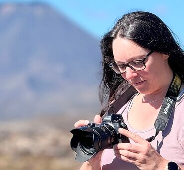Janine Krippner checks her camera settings while on volcano watch. Photo: Drew Mehrtens.