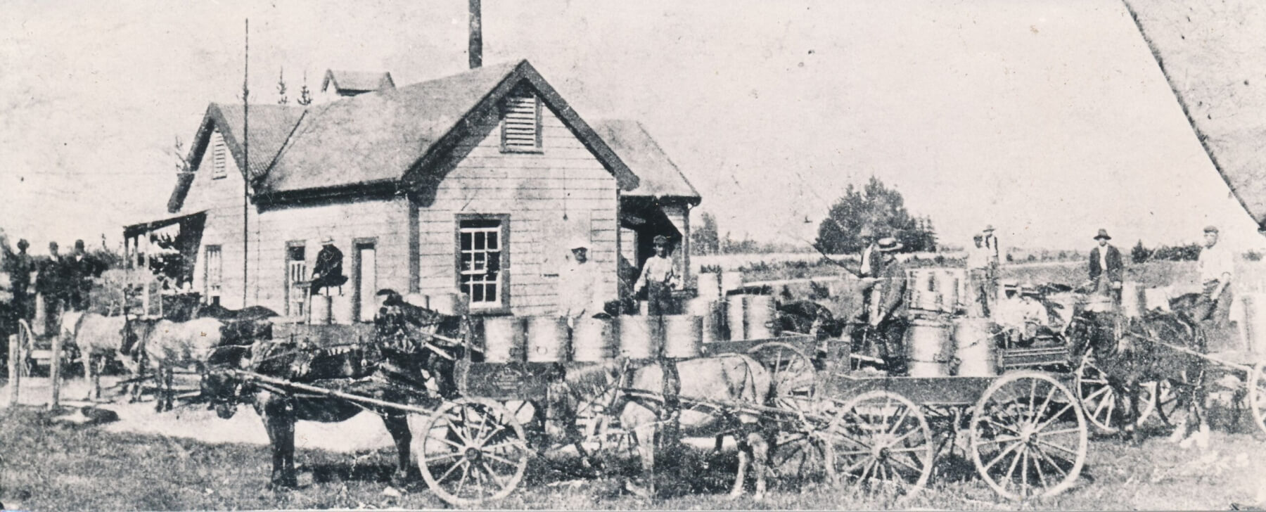 - Dairy farmers line up outside the Pukekura creamery in 1905. Photo: Cambridge Museum.