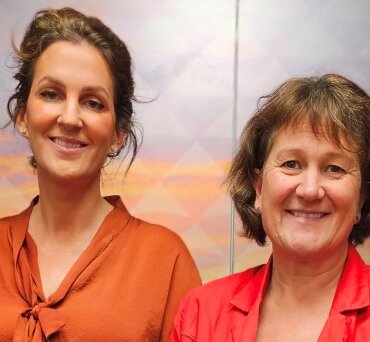 Community board chairs Jo Davies-Colley (Cambridge), left, and Ange Holt (Te Awamutu & Kihikihi), right before this week’s meeting about their performances. Photo: Mary Anne Gill.