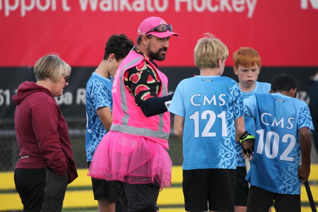 Their coach, Stephen Butcher, also began the day with sparkle, supporting the tournament’s “good vibes only” philosophy by pulling on a pink hi-vis vest and tutu to match the pink cap and rainbow socks he had arrived in.