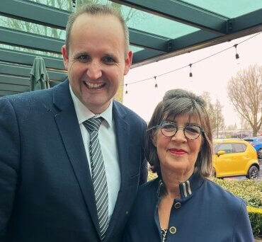 St Paul’s Collegiate School headmaster Ben Skeen with Cambridge U3A committee member, Lyndall Hermitage.