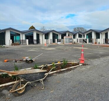 Livingstone Building built the units to a six Homestar rating equivalent which ensures warmer, drier, and healthier homes. The units include a bedroom, kitchen, bathroom and living area as well as outdoor space but no garages.