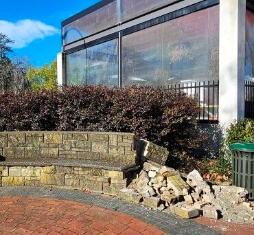 A memorial seat made from Hinuera stone – built in 1983 to commemorate a century of worship by the Presbyterian congregation -has been damaged by a vehicle.