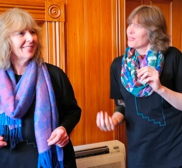 Julie Mayes and Karen Johnson behind the scenes during the Royal New Zealand Navy Band’s performance at Cambridge Town Hall. Photo: Mary Anne Gill.