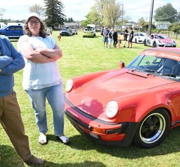 Dynes McConnell and his sister and co-driver Melody McConnell beside their classic Porsche 930.