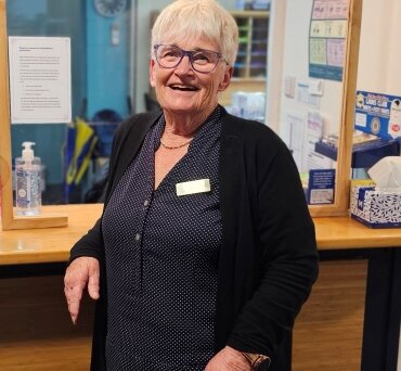 Sally Davies at Te Awamutu Medical Centre with Michelle Beecroft in the background.