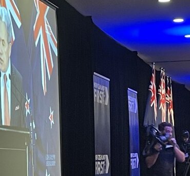 Peters was interrupted halfway through his hour-long speech at the end of the party’s annual convention when protesters burst in at the back of the room shouting “free Palestine”. Party faithful including Hamilton-based NZ First candidate for Hamilton West, Kevin Stone ushered them out after a couple of minutes and two arrests were made after the meeting.
