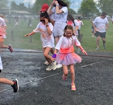 They sold an impressive 800 tickets to what they called the 2024 ‘Colour Cambridge’ community event, held at the Hautapu Sports Club grounds. Many among them donned white Kids in Need t-shirts before running around the roughly 2km track where they were doused with coloured paint and sprayed with water, courtesy of the Cambridge Fire Brigade, then ending their run through a hail of bubbles.