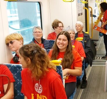 Dressed in red ‘End Polio Now’ t-shirts, Rotarians took the Te Huia train to join Auckland Rotarians in travelling every line on the city’s rail system.