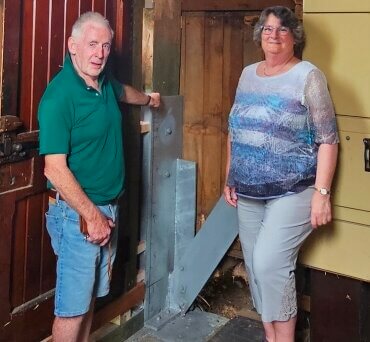 Committee members Paul Phillips, left, and Leonie Austin inside the vestry room