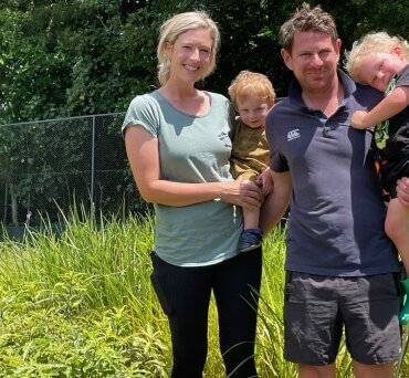 Native Dairy Farmer owners Alice Trevelyan and Dave Swney enjoy their native nursery with their boys Walter, aged two, and Rex, aged one.