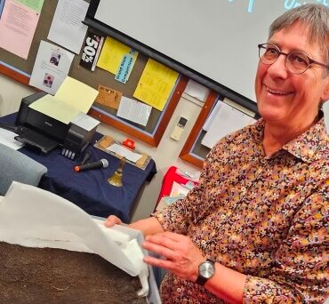 Antanas Procuta brought along a box with ragfelt taken from below the roof of the old Court House, now Cambridge Museum, which had proven to be a very early example of insulation. Photo: Mary Anne Gill.