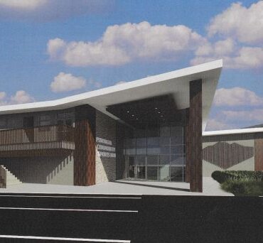 The concept idea for the front of the new Pirongia Community Sports Hub – the gateway to the building. Image: Design Management Consultants
