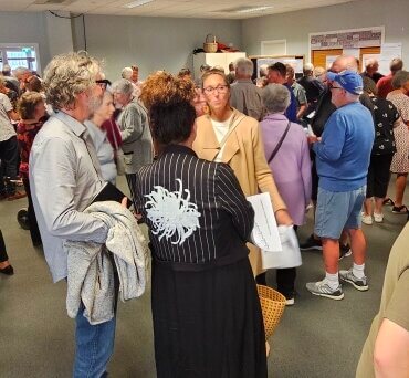 Waipa mayor Susan O’Regan, left, and deputy mayor Liz Stolwyk, right, at the Cambridge Connections meeting. Photo: Mary Anne Gill.