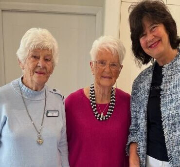 Clare Coles, right, with resident Knit and Natter Group members Annette Goodall and Rae Knell, left