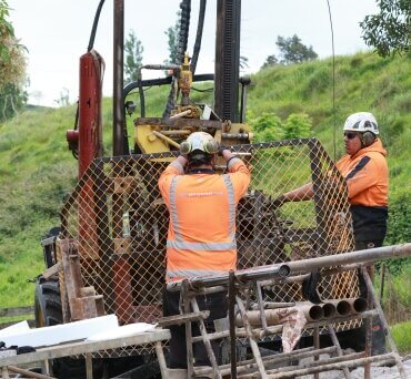 Geotechnical teams drill for core samples Moana Roa Reserve in Karāpiro.