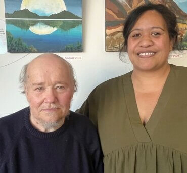 Enrich Plus Te Awamutu team manager Ngawai Hamblin, right, and artist Kat Corin