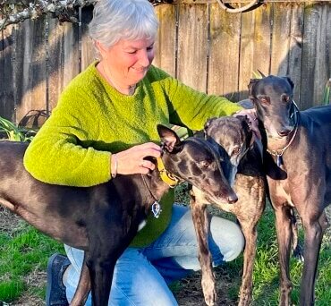 Jenny Bartlett with her beloved retired greyhound, Disco. Photo: Yvette Bodiam