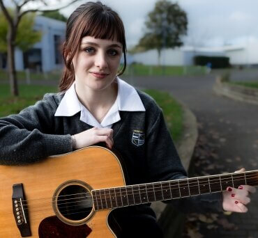 Today, in the music room, as Sahara’s dextrous fingers begin their rhythmic dance across the fretboard, the haunting melody of her original song, Dracula – which won first place in the solo/duo section of this year’s Waikato Rockquest – resonates with talent.