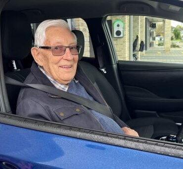 The 93-year-old has become the first Cambridge Resthaven resident to take up the facility’s EV car-sharing option. Every now and then he glides off in the Resthaven Nissan Leaf, driving himself to appointments in town and buying whatever is needed for his wife Mary who isn’t able to go out herself.
