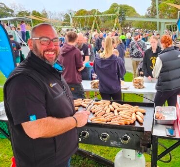 Aaron Donaldson cooks sausages at Leamington Domain playground reopens
