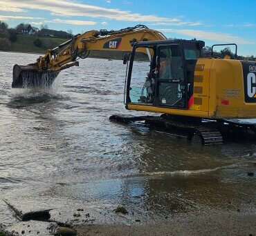 Contractor Paul Garland watched as Rob Curry drove a digger down the main boat ramp to clean up the area where powerboats launch into the river from trailers, start their engines and damage the concrete.